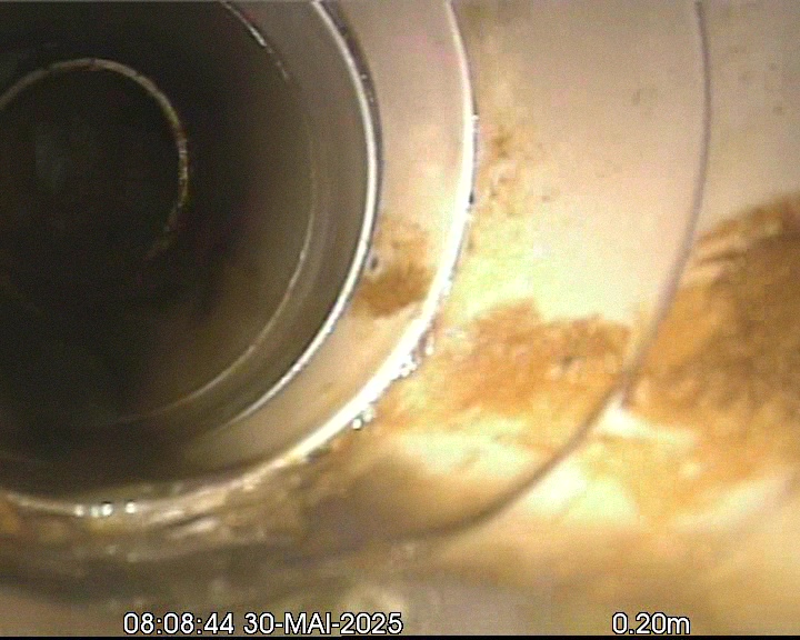 Une seconde inspection caméra a confirmé le succès de l’opération : le tuyau est désormais entièrement dégagé, propre et fonctionnel. Les parois, auparavant partiellement obstruées, ont retrouvé leur aspect d’origine, assurant un écoulement fluide et durable des eaux usées.